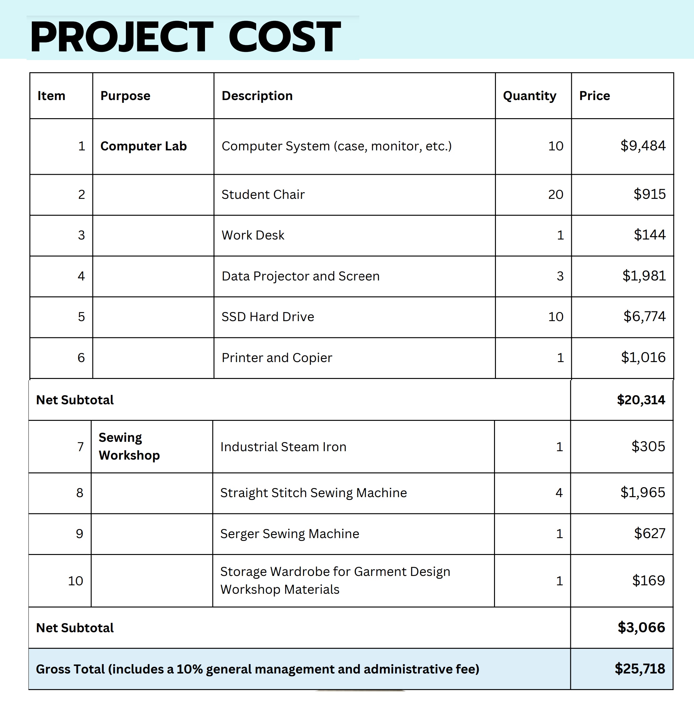 Proposed Improvements for the Computer Lab and Sewing